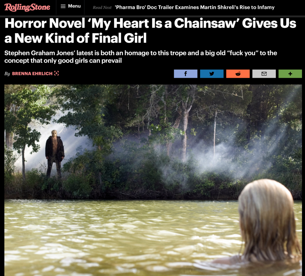 HomechainsawChainsaw avalanche: part the fourth https://www.rollingstone.com/culture/culture-features/my-heart-is-a-chainsaw-horror-novel-stephen-graham-jones-1221505/ https://tornightfire.com/my-heart-is-a-chainsaw-is-an-anthem-for-slasher-superfans/ MY HEART IS A CHAINSAW by Stephen Graham Jones – Review https://freepressonline.com/Content/Home/Homepage-Rotator/Article/Book-Review-Stephen-Graham-Jones-s-My-Heart-Is-a-Chainsaw-will-delight-horror-movie-fans/78/720/75526 My Heart is a Chainsaw https://twitter.com/d_k_lawhorn/status/1435417436216512513?s=20 https://twitter.com/DeathCursePod/status/1435668597892845568?s=20 Kate’s Review: “My Heart Is a Chainsaw” @astoldbybex If you like this #horror movie check out this #book! #horrorbooktok #horrorbooks #booktok #bookrecs ♬ Experience – Ludovico einaudi