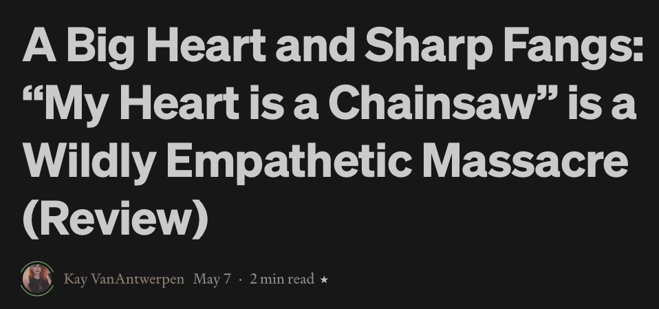 Just noticed that, when turning the Chainsaw page into a Chainsaw POST, so the formatting of this new theme wouldn’t fry, I somehow deleted all the reviews I’d been linking over there. So, recovered some, probably lost some, but, the good thing is: maybe found some new ones? Here: