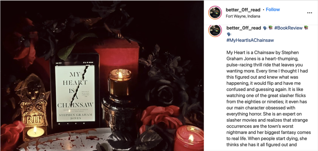 Completely floored by @SGJ72 upcoming novel. Redefines and electrifies slashers and horror. I expected the gruesome, twisted, dark horror with a message and big ideas but was unexpectedly surprised by the cathartic experience this novel was. Tears flowed. Should not be missed! pic.twitter.com/VnQ9Vh106C