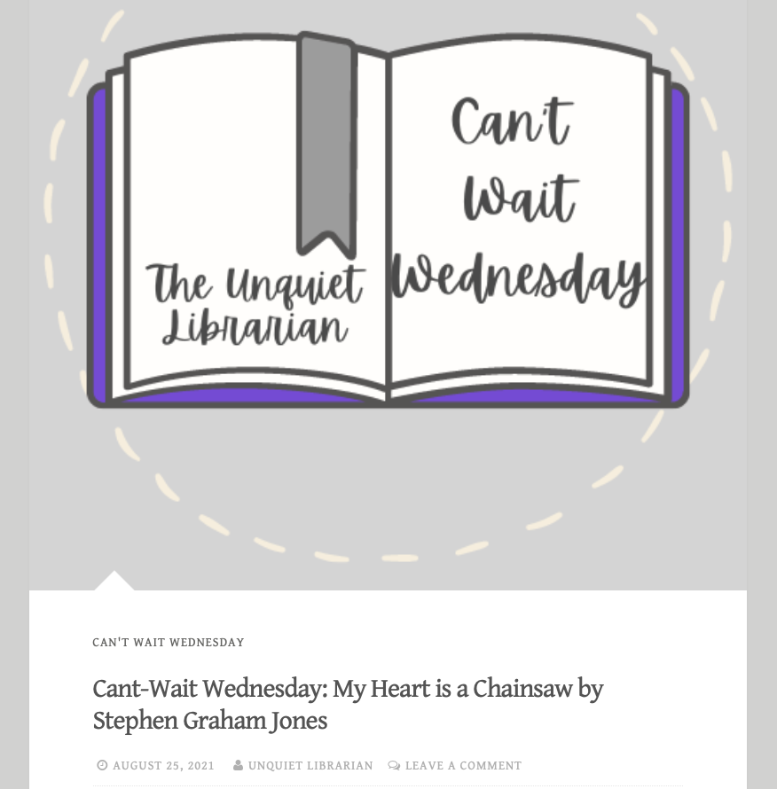https://unquietlibrarian3.wordpress.com/2021/08/25/cant-wait-wednesday-my-heart-is-a-chainsaw-by-stephen-graham-jones/