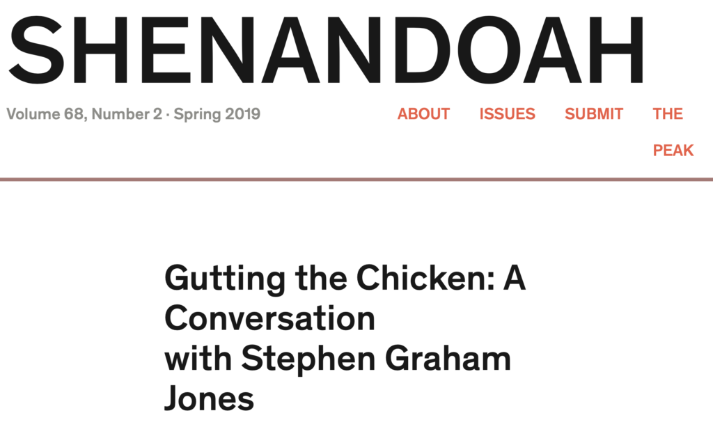 Homenews“Chicken” story up at Shenandoah Along with an interview about the story: https://shenandoahliterary.org/682/gutting-the-chicken/