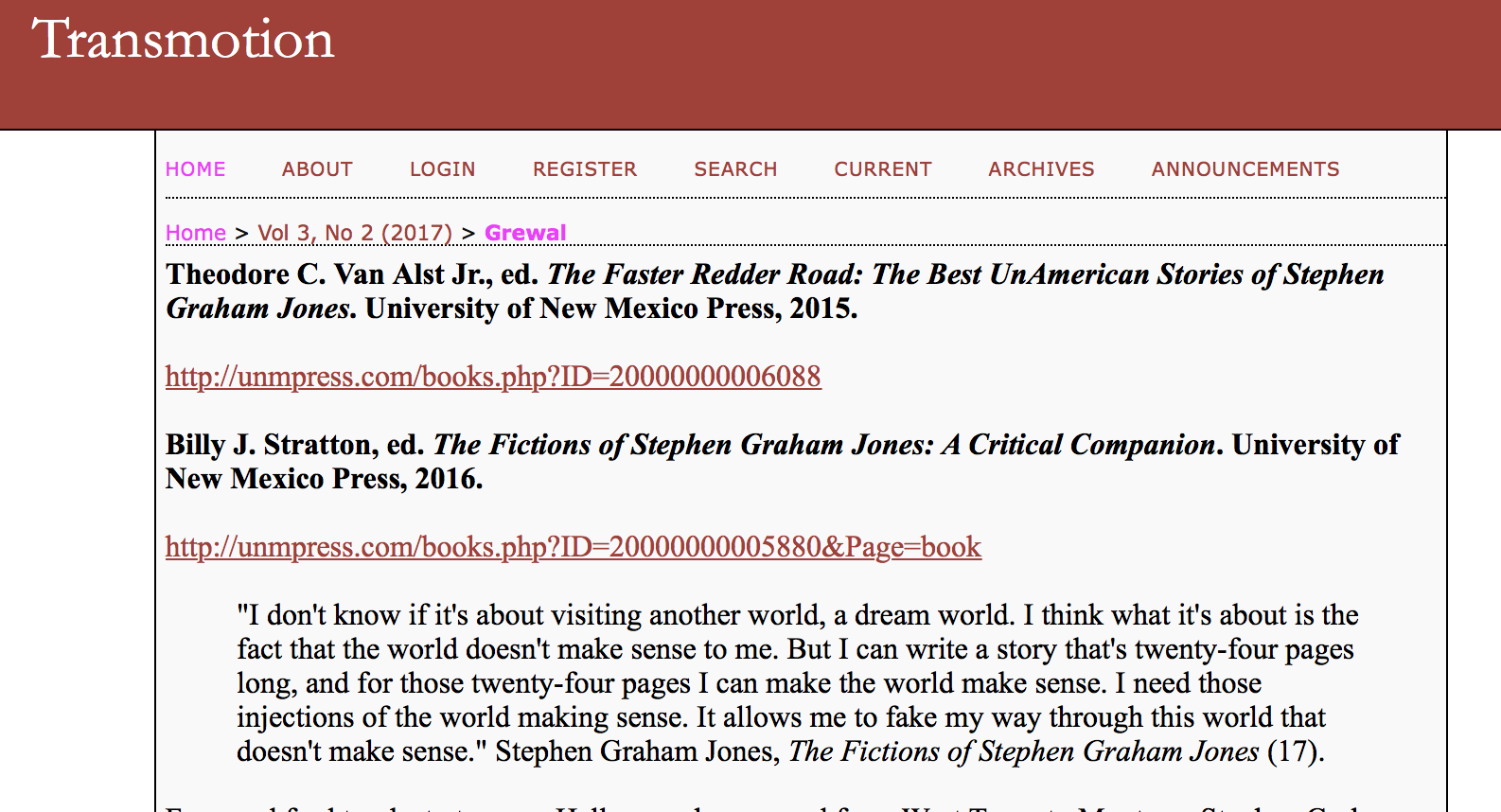 Speaking of them/Transmotion, this is in that same issue: “Consuming, Incarcerating, and “Transmoting” Misery: Border Practice in Vizenor’s Bearheart and Jones’s The Fast Red Road“.