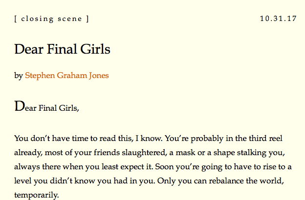 http://www.juked.com/2017/10/stephen-graham-jones-dear-final-girls.aspĀ