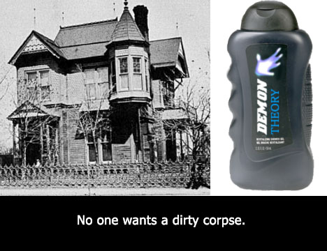Finished copies exist, are real, are in the mail now. If I had the skills, I’d rework some of those gas-shortage pics from the late seventies, of all the cars lined up, only I’d put a big DEMON THEORY in place of the pump. or maybe pirate one of those Body Axe commercials, re-edit it to showcase DT >>>which, yeah, as you can see, Logan over at the Velvet just rigged up. very cool. rigged this one up too.