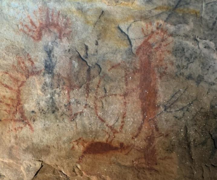 Looks to be an elk person maybe taking revenge for the elk on the ground? At least in a The Only Good Indians read. This is the link with a lot more: http://www.profmichaelfuller.com/picture-cave.html