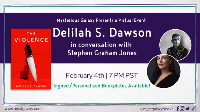 On Friday, February 4, 2022 at 7 pm PT, we’re hosting a virtual event with @DelilahSDawson in conversation with @SGJ72 for THE VIOLENCE! Signed and personalized bookplates available!