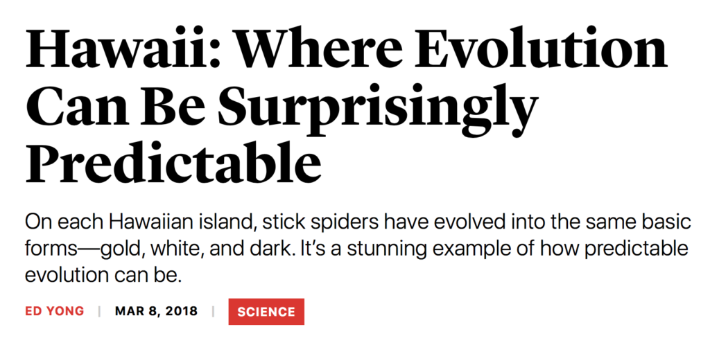 This is some cool stuff. And, I can see it being used as kind-of support for what I keep hearing: that we sapiens-types evolved not in a single push from heidelbergensis or so, but in both Africa and Asia from erectus. Just, as with these spiders, we ended up so much the same that we then mingled up and became what we are today. Really? I do think we found ourselves in Asia when we came up out of Africa, but I kind of doubt we’d evolved to be that similar—though, yes, with primates, if two lineages share a common ancestor within the last couple million years, they can mate and produce fertile offspring. So, I mean, yeah, Peking Man, Java Man, they were of course there. And it’s kind of hard to argue they weren’t somewhere in the mix that’s now us. Just, they’re maybe a step before the Denisovans, I’m thinking (which are now, like Neanderthals, in us, as we’re very Borg: we assimilate).