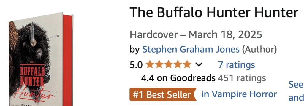 HomebuffaloGood BHH badges “Vampire Horror” “Historical Fantasy” “U.S. Horror” (which kind of cracks me up, like the big machine doesn’t know what this book is doing with/to/within “America” . . .) And, not just there. B&N as well: it’s good for the rank to be less than half the page-count, yes?