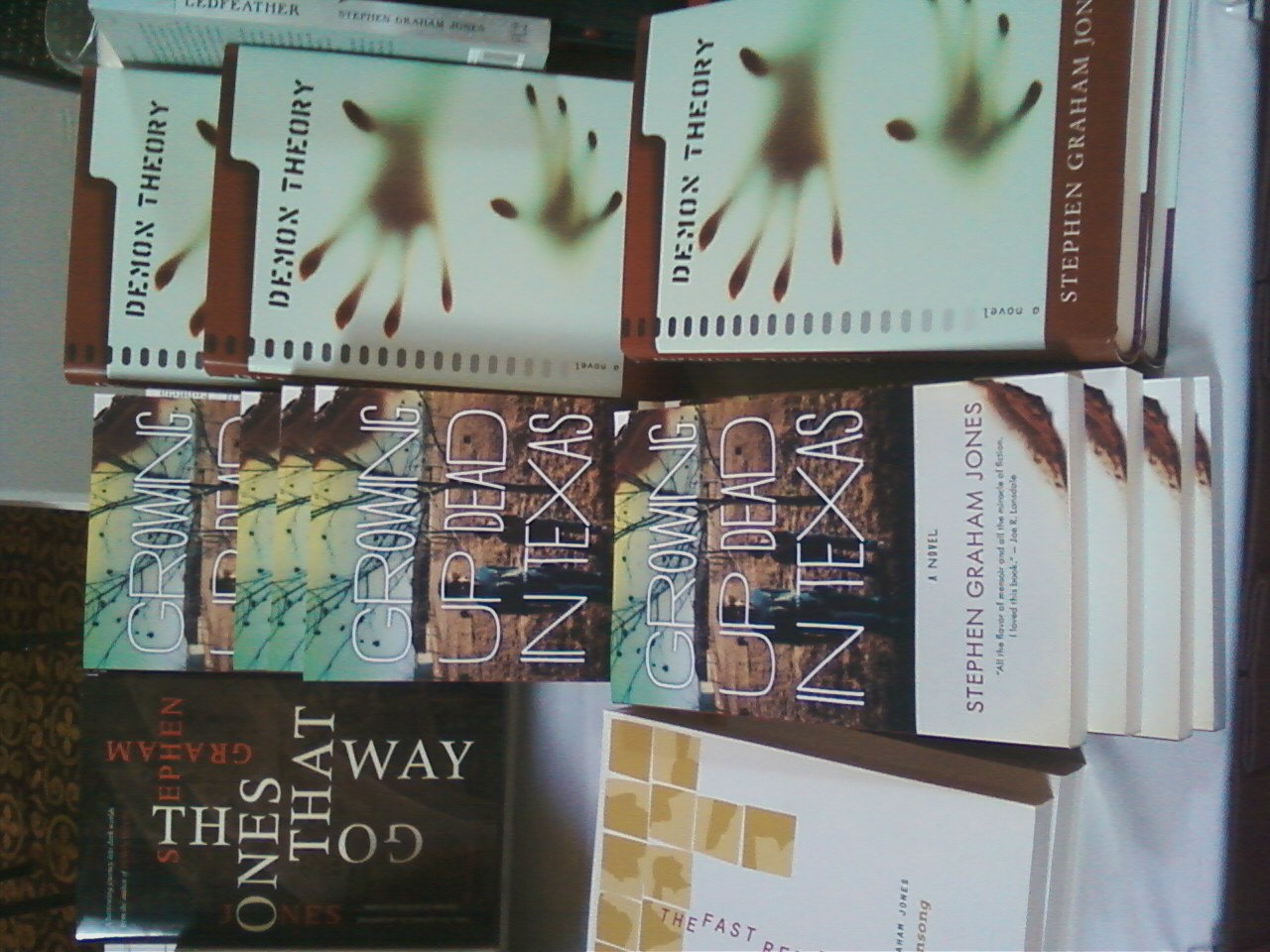 Hey, Growing Up Dead in Texas is an LA Times Beach Read. And also all around. And Goodreads reviews are coming in — thank you, readers, talkers, passers-on. Bob Pastorella‘s writing about it from Texas. Amazon reviews are coming in. And, for the first time the other day, I saw it live in the wild (shipped direct from the printer to Mystery Bookstore):