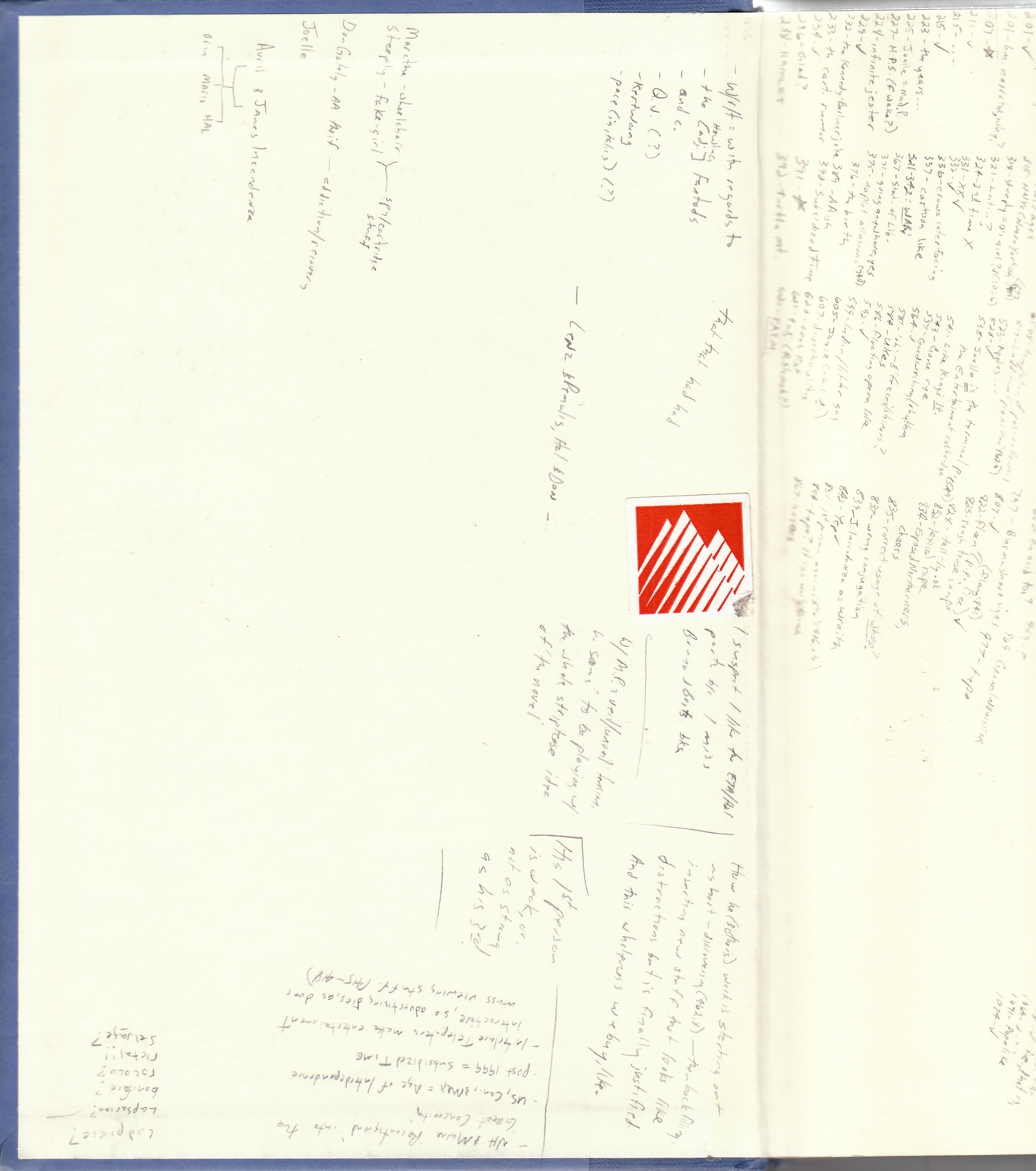 Anyway, paging through again, and I remember buying this book. I was in Tallahassee at the time, deep in grad school but about to jet north to Montana for a week or so. However, first stop before the airport was this little bookstore I’d never been into, a long hall of a place, no clue about the name. I wasn’t there for Infinite Jest, though — I was late for that, really (I’m thinking this was 97) — but Mason & Dixon. Which I quickly nabbed. On the way to the counter, though, there was this blue cardboard fold-up little display stand thing, with this big brick of a blue book on it. With clouds on the cover. I couldn’t help myself, I had to read it a bit. And then it was like, I don’t know, is ‘kismet’ the word that means something like ‘serendipity?’ Then why not just say serendipity, yeah (because it always reminds me of dragons, that word, I don’t know why). Anyway, either on the dustjacket of Infinite Jest (I don’t know; first thing for me is always getting rid of the useless, useless dustjacket, so I don’t have that anymore, now) or from talking to somebody at the same shelf, they told me that this David Foster Wallace, he was outPynchoning Pynchon. Which of course had to be a joke. But of course, too, I had to see for myself. So I charged both of them, am probably still paying for them. Happily. Too, I was lot tougher back then. I slammed through Mason & Dixon in something like three days, then spent the rest of the week in Infinite Jest. Good times, good times. I was stuck in Bozeman with it, I think. Snowed in close to a McDonald’s. Charged some excellent boots that week as well, which I would have paid for twice over.