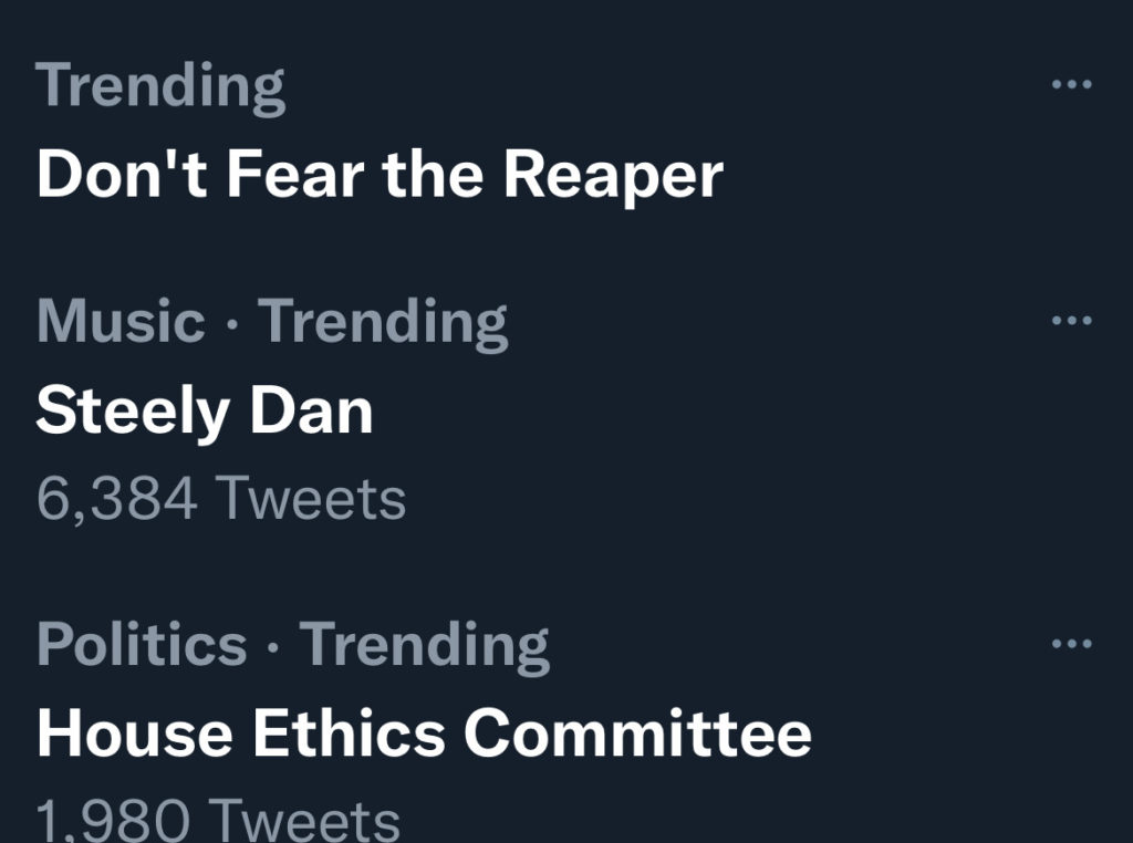 Also was trending WITH Steely Dan!