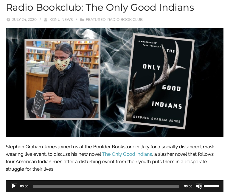 HomeelkKGNU & Boulder Bookstore! So great, getting to do an ACTUAL LIVE EVENT! (for a very limited, socially-distanced crowd). And, now you can listen to it: https://news.kgnu.org/2020/07/radio-bookclub-the-only-good-indians/