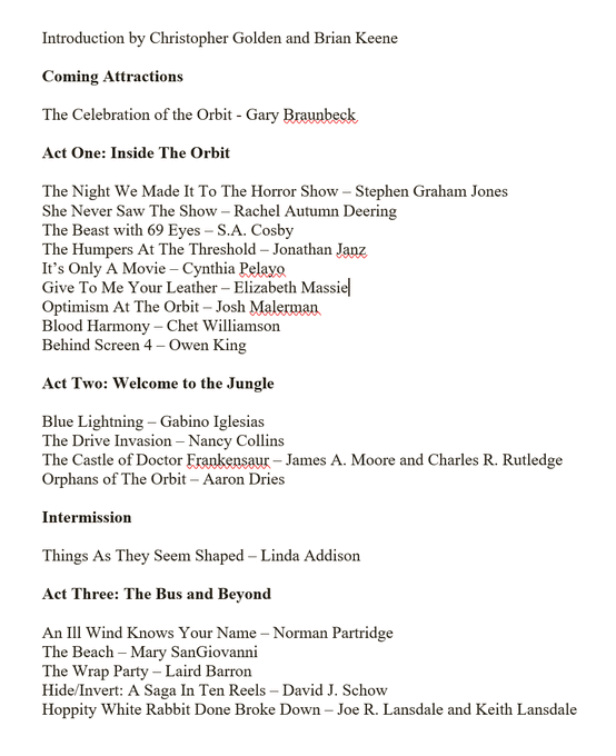 HomeetcLansdale’s The Drive-In Couldn’t be more thrilled to be part of Briane Keene and Christopher Golden’s tribute anthology. Brian tweeted the TOC: