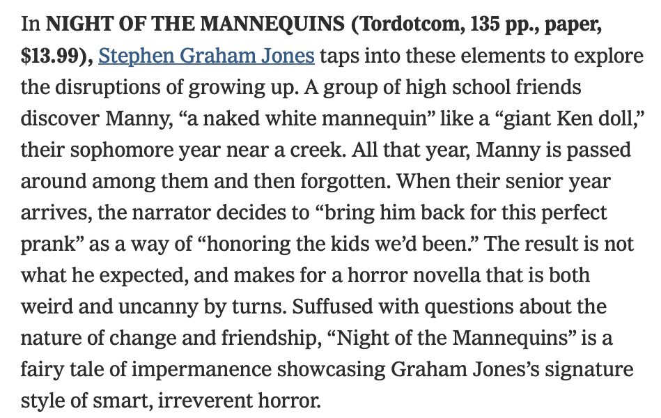 HomenewsMannequin at the NYT! Thanks to Danielle Trussoni: https://www.nytimes.com/2020/10/22/books/review/elizabeth-hand-book-of-lamps-and-banners.html
