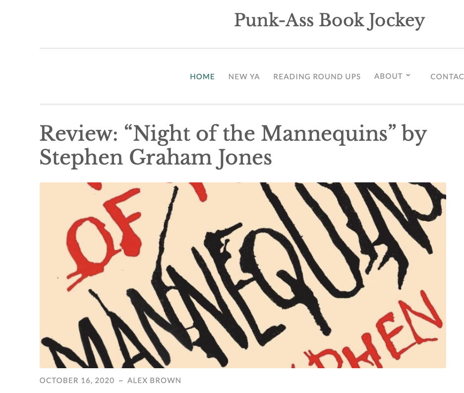 HomenewsMannequin write-ups https://mybookshelfdialogues.com/2020/09/28/night-of-the-mannequins-by-stephen-graham-jones-book-review/ https://bookjockeyalex.com/2020/10/16/review-night-of-the-mannequins-by-stephen-graham-jones/ https://whatjessreadsblog.com/2020/10/15/novella-reviews-night-of-the-mannequins-the-house-on-abigail-lane/