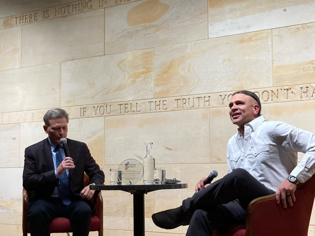 Couldn’t have been a better time. Such an honor (see the award there on the table?). And, wow, to share a stage, even just for one conversation, with David Baldacci. Guy’s smart, a solid writer, and’s just a good dude: