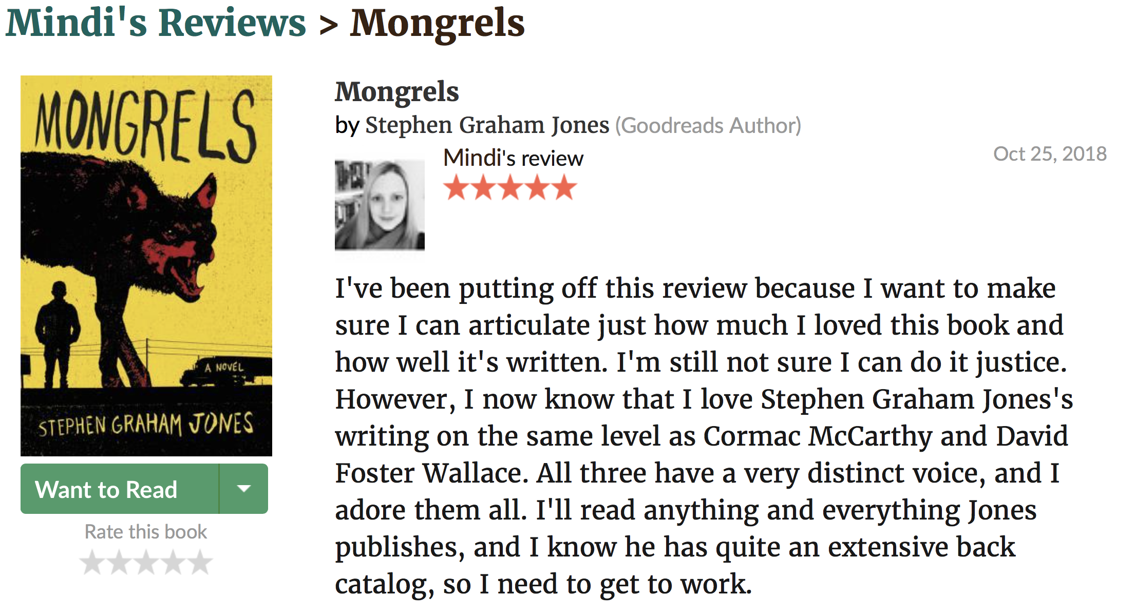 HomewerewolvesMongrels words Thank you, Mindi Snyder: https://www.goodreads.com/review/show/2040915430