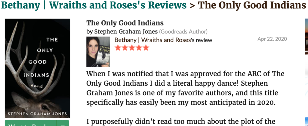 And, there’s always Goodreads reviews rolling in, but Bethany’s is extra special cool (as, I’m sure, is she):