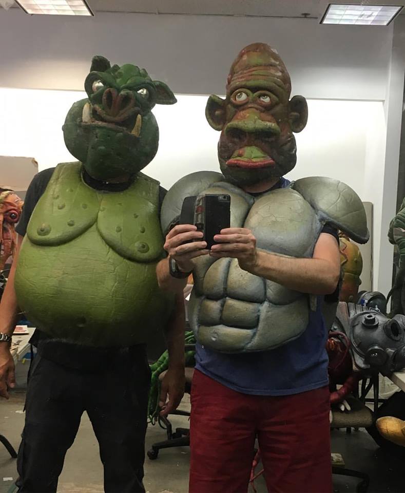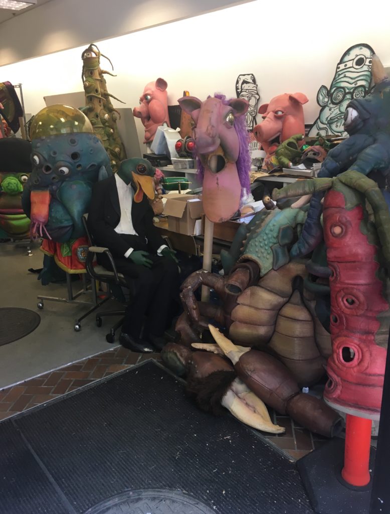 Then that night, after much carousing—well, much hanging on stools and talking with good people—it was the Eldritch Ball, of which I have only pictures in my head: giant jellyfish, blacklights, and all these tentacles on the dance floor. Such a cool party. They killed it with decorations, and everyone else killed it by dressing up. Except me. For once. You know how I’m usually the one overdressed in some Johnny Cash looking getup? This time I only had a t-shirt. But they still let me in. More important: I have a kind-of policy, where I only go to cons where I might get to ride the elevator with someone in an elaborate latex mask. Necronomicon Friday night was my kind of elevator ride.
