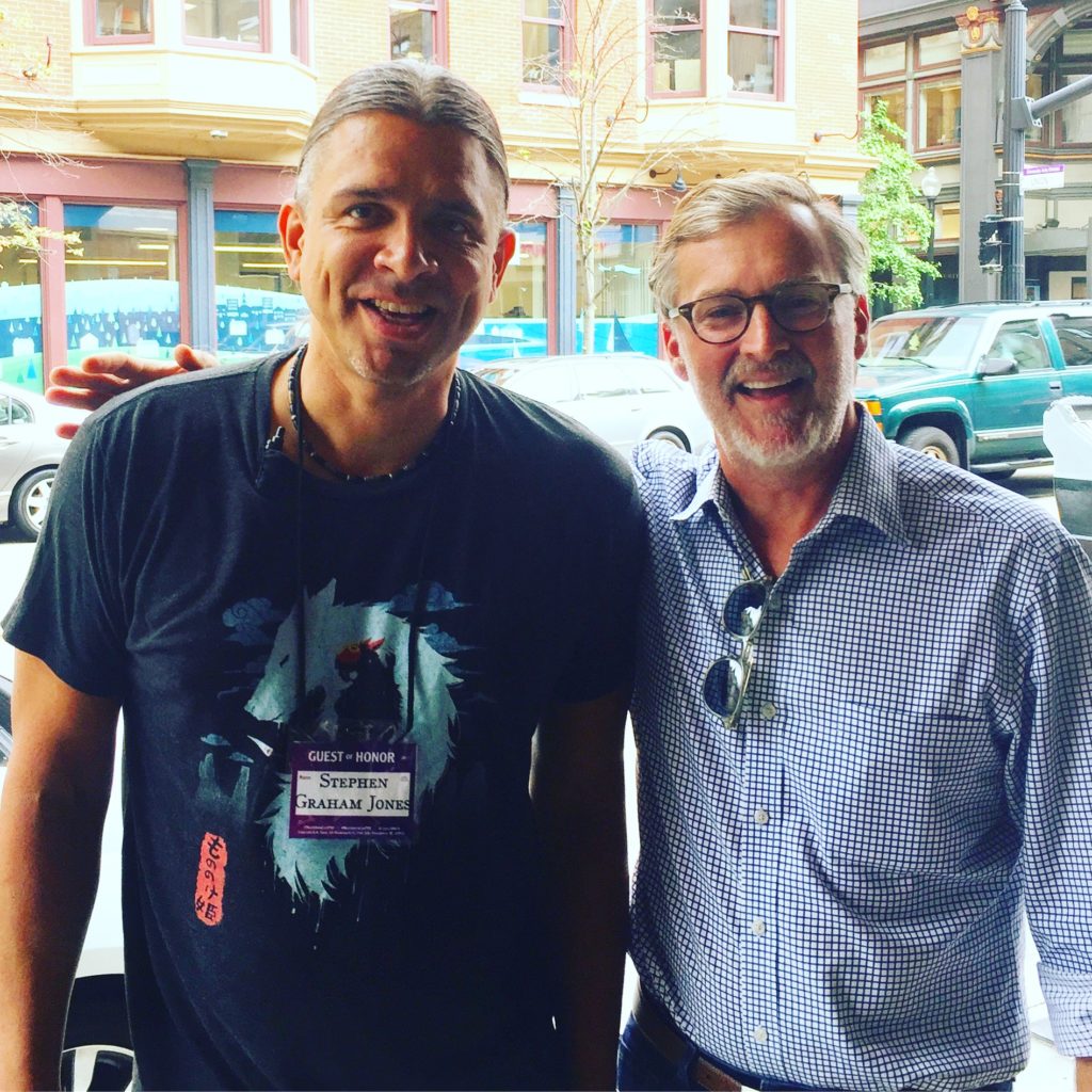 And, though it’s not Necronomicon-ish, I then got to catch lunch with a friend I haven’t seen in nearly twenty years. We came up through the MA at UNT together, and wrote and wrote and wrote in workshops. So cool to be in the same town again, finally: