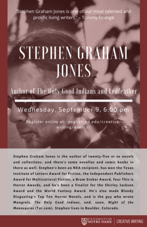 more here: https://english.nd.edu/events/2020/09/09/creative-writing-reading-series-ft-stephen-graham-jones/