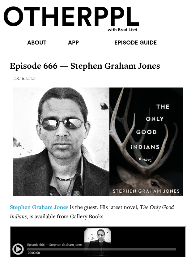 Homeelkotherppl I’M an otherppl! So excellent, talking with Brad Listi, and such an honor to be the Damien of it all — episode 666: https://otherppl.com/stephen-graham-jones-interview/