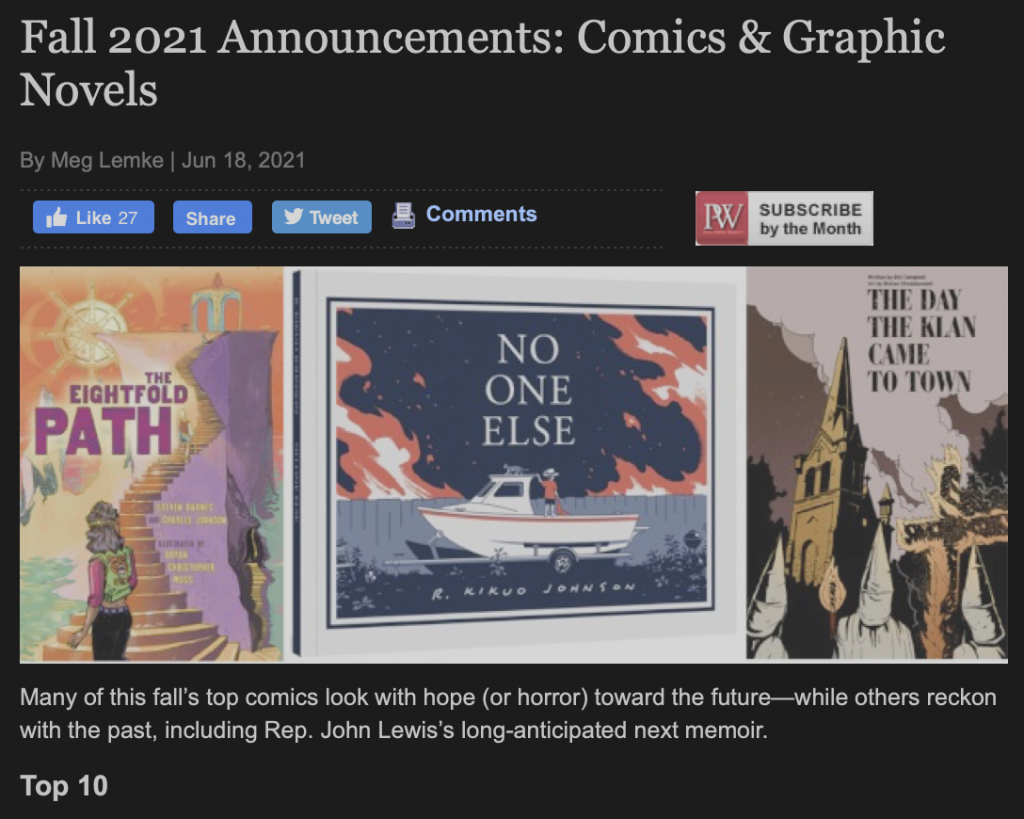 Homecomic booksPW & Memorial Ride Kind of Publishers Weekly to include Memorial Ride in this stack: https://www.publishersweekly.com/pw/by-topic/new-titles/adult-announcements/article/86695-fall-2021-announcements-comics-graphic-novels.html