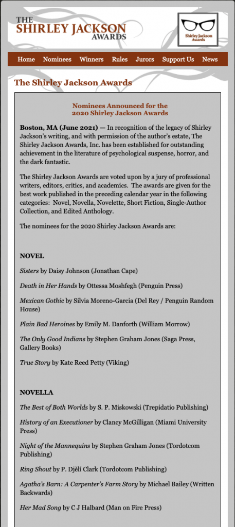 Shirley Jackson finalist x 2!
