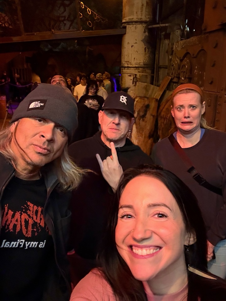 (some writer dude in a Jade Daniels shirt, Phillip Fraccassi throwing horns, Lorin Dearing with the selfie phone, and Elizabeth Copps, who you can maybe tell wasn’t super on board with us all having taken the “touch us, please”-option with our tickets)