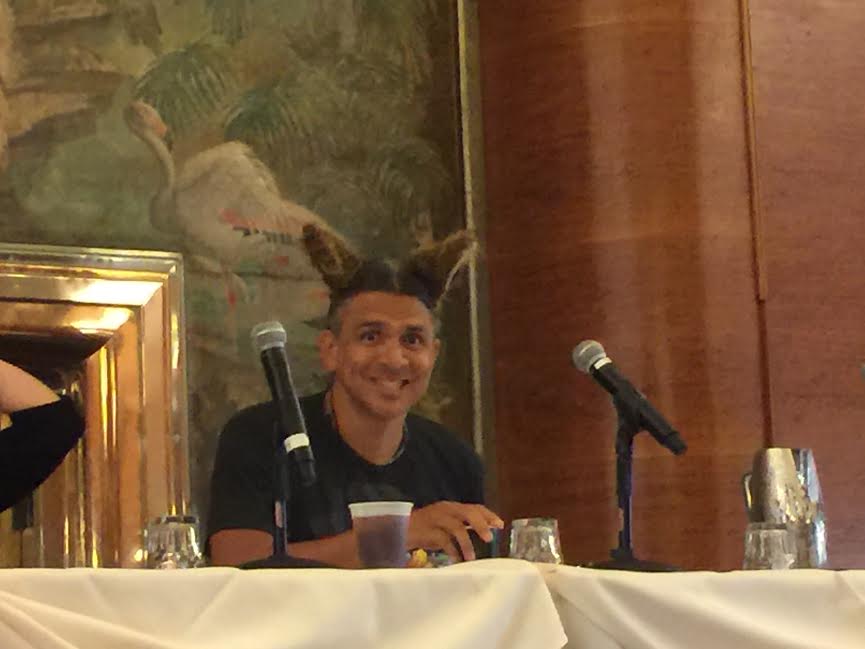 That’s, from left to me, moderator extraordinaire Hank Schwaeble and Alvaro Zinos-Amaro. I learned a lot on this panel. I know I’m supposed to be saying a lot and laying down truths and all that. But I like to listen to smart people and good writers, mostly.   [hey, a snap of all of us just showed up]