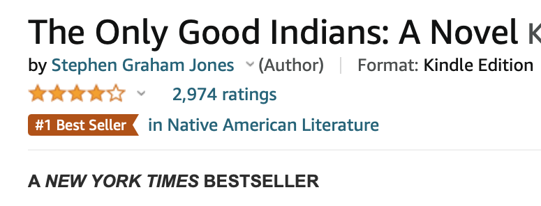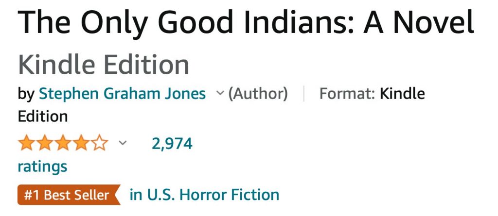 HomeelkThe Only Good Indians on blue light special! https://www.amazon.com/Only-Indians-Stephen-Graham-Jones-ebook/dp/B07THF63FL And as a result, it’s #1 again!