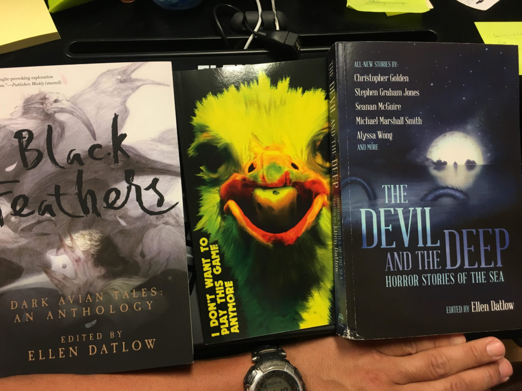 HomenewsThis week’s mail Three books I have stories in (Devil got kind of damaged en route, but, I mean: shipwreck, right?).