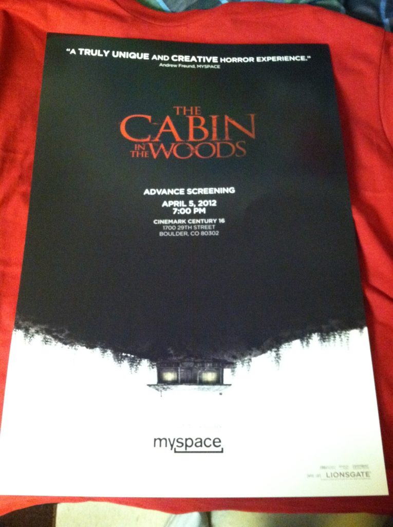 And, the two OTHER cool screenings for me? Both earlies: Paranormal Activity, which so disturbed me, and still disturbs me just in memory, and The Cabin in the Woods, which Drew Goddard brought to Boulder, since he went through school here.