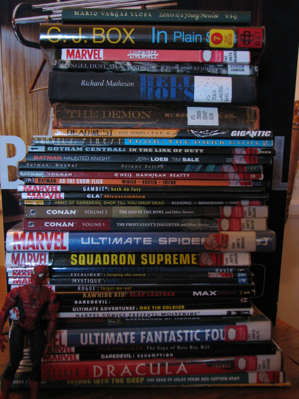 And yeah [Van], HOUSE NEXT DOOR blew me away. I have the movie Netflixed now. along with BURNT OFFERINGS. and also a couple of Spike Lee things (I refuse to call them ‘joints’), just b/c I liked INSIDE MAN (the first Spike Lee I’d ever seen–as you can maybe tell from the library books here, for me “S. Lee” always meant Stan the Man…).