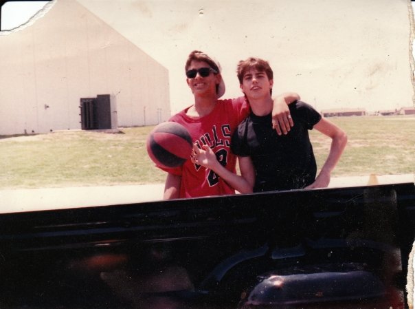 This is my high school parking lot, and my Michael Jordan ball, and my friend Randy Howard: