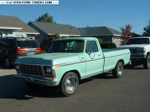 My second 79. I bought it for $600 in Lubbock, Texas, and, driving it back to my girlfriend’s apartment on 4th—she’s my wife now—I wrecked it up. Rear-ended a Jeep, which folded the brush-guard back into the grill and hood. But, I did what you do: chained onto a utility pole or something, reversed slow until the guard eased back out to where it had been. And, that guard, like the headache rack, like the rear bumper, like the toolbox, it was bright harsh utility white, and looked completely stupid. That was goal, though: I’d spent so long babying my 67 that I wanted something I could just bounce around in, never worry about. This was that truck. It was even a shortbed worktruck, which really doesn’t make any sense. Worse than that? Six-cylinder. This truck was a joke. And I’ll forever love it. It got me all the way through undergrad—and, the night I asked my girlfriend to become my wife? My rental house wasn’t safe enough to stash the ring in—always gunshots, people running across the roof, strangers in the living room—but this Ford, it had the driver’s seat blown out, so what I did was stuff that black-velvet ring-box deep unto the foam, so that she was sitting on it as I drove her to Red Lobster. It was the best secret ever. And that green Ford, it kept that ring safe for me. I don’t remember selling it all. I think it just became part of me, somehow. And, while this isn’t it, this was the color mine was, except more sun-faded, and no chrome, and—of course—factory rims (white . . . ),mismatched tires, and a kind of crunched-in nose that always made me think of the truck as a parrot. If only it could talk.