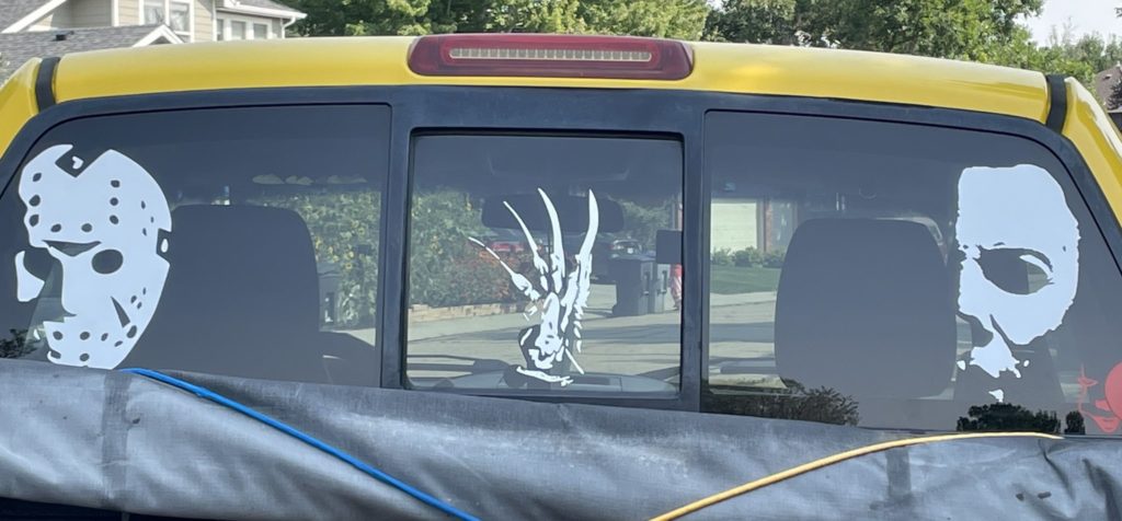 I haven’t been buried THAT deep in the action yet, but I have been in a few holes, anyway, and only got stuck once in it, in deep Montana snow, going after elk. But the winch yanked me right out. Finally found a 35″ spare yesterday, too, to go with the 35s it’s running (I’d been sneaking by with a 33″ spare). When the top’s off, it’s pretty fun, and it’s a dream to park (turning radius + line of sight), but it’s terrifying to ease through a parking garage (you want to duck, and then duck again—you’ve practically got to pole-vault to get into the driver’s seat). Wanted to post a post-mud, hunting photo I thought I had from this last year, hunting in Colorado, but I guess I don’t have it anymore. This pic is just from the original craigslist posting, with the soft top on. But I usually run the hardtop, just because I don’t have anywhere else to stash it BUT the Jeep. Anyway, I may keep it a while—it’s yet to let me down—but my heart, it’ll never really be in Jeeps, no matter how modular they come apart and go back together, no matter how much of a culture is associated with them. Rock-crawling like everybody does up here? I can’t understand the fascination. But, unhook the swaybars on this, and, yeah, it’ll flex pretty well. Main thing I’ve done to it, I suppose, is mount a 60″ jack on the hood—which is 12″ longer than makes sense. I don’t know why I always buy the tall ones instead of the short ones. But, as to why I got a Jeep in the first place, when I’ve always been trucks trucks trucks: it’s because I know if I go 4WD with a truck, inside of a year I’ll have it jacked into the sky, all manner of bumper &etc crusted all over it, and I’ll probably even try to put a Lone Wolf McQauade supercharger on it, if not two. So, I figured with a Jeep, I’d build it up, sure, but a Jeep caps out pretty quick, too. At least when it’s trucks you really care about. Next up for it is some of that plastic-paint to black the wheels out; my brother-in-law has had excellent success with that stuff, and I’m anxious to try. And, that cross on the side: I bought this Jeep off a guy ten, fifteen years newer than me. I don’t think the cross necessarily means I’m a Templar. But who knows. Maybe the sang real is stashed somewhere on the chassis.