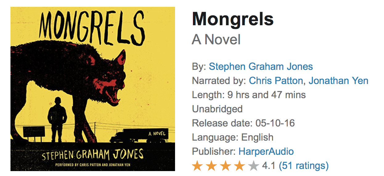 Hey, the audiobook of Mongrels is in Audible’s 2-for-1 sale for the next few days, looks like: