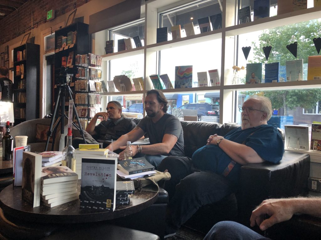 Anyway, was great doing this event with Carter and Steve. Here’s to many more. And, always wonderful being at BookBar, one of the coolest of all the bookstores. Didn’t make it back to Boulder until nearly eleven either, I guess, at which point, too tired for the standing desk, I parked my laptop at the kitchen table, wrote until well after midnight, when I kept waking at the keyboard, finally decided forward progress wasn’t happening anymore. And, now, I’m only doing this post a few minutes before lunch—have been hammering away on the keyboard all morning. Writing, man, it’s where it’s at, yeah? No better place to be, I don’t figure.